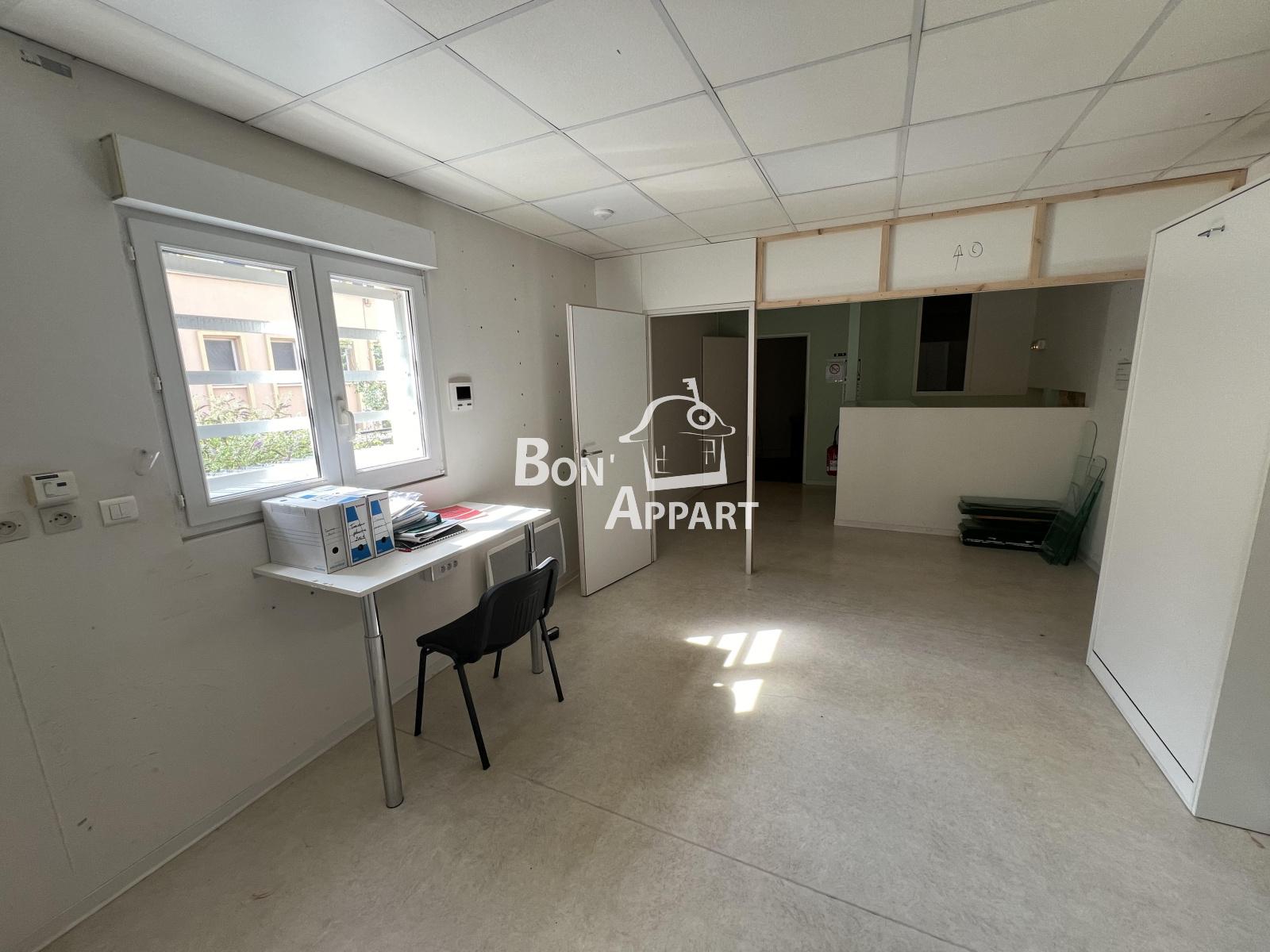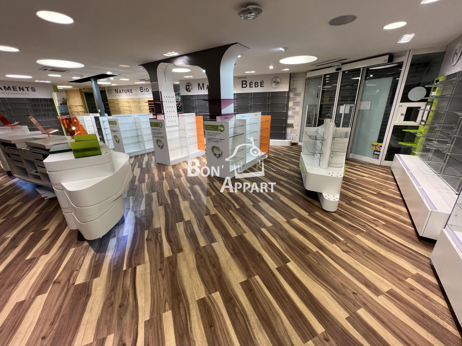 en étant composé du côté rue, d'un bel espace avec accès PMR et de grandes vitrines. Ce premier espace donne sur un demi-niveau supérieur