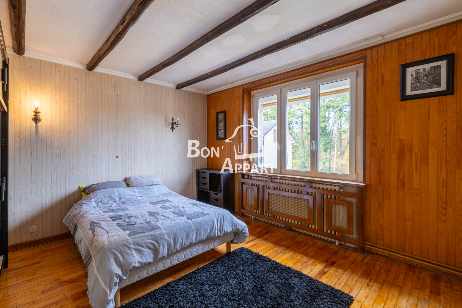Au premier étage, vous trouverez trois chambres ainsi qu’une salle de bain. Les combles sont aménagés et offrent une grande chambre supplémentaire.