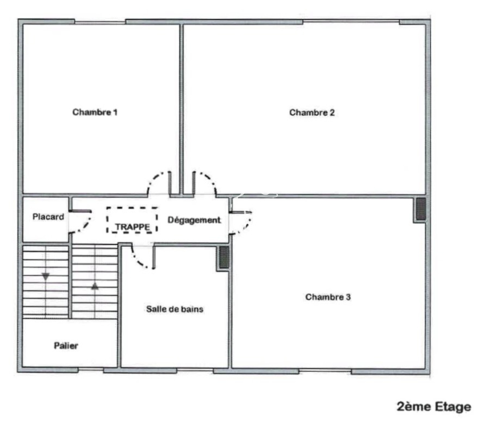 À l’étage, vous trouverez 3 chambres ainsi qu’une salle d’eau avec WC, et une trappe pour accéder au grenier isolé.
